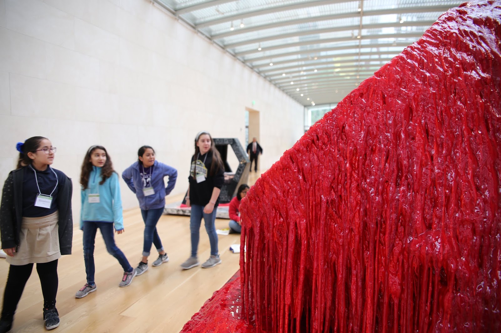 It almost looks as though The Cup is frozen: it is frozen in the air, and the urethane is frozen where it dripped. Sterling Ruby feels that sculptures like this show a frozen gesture. A gesture is a movement of the hand, or arm, or face, or body that expresses an idea or emotion. The gesture here could be a big imaginary hand holding the cup, or the urethane dripping from the artist's hand.